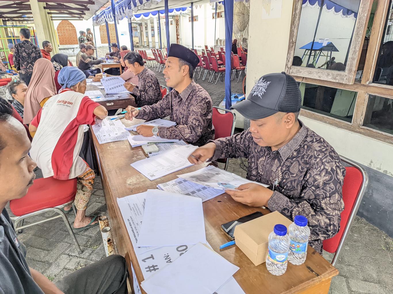 Sejumlah personil pamong Kalurahan dilibatkan dalam proses pembagian beras mulai dari penerimaan warga penerima yang diwajibkan membawa KTP dan undangan, mengarahkan ke loket masing-masing, melakukan verifikasi, foto penerima, hingga pengambilan beras. Red-Cr