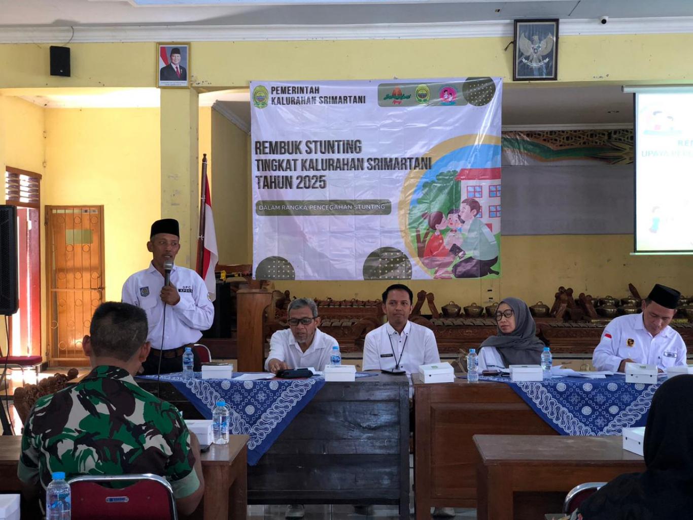 Srimartani. Meneruskan hasil FGD tentang penanganan Stunting di Kalurahan Srimartani yang telah dilaksanakan pada pekan lalu, hari ini (06/06/2025) Pemerintah Kalurahan Srimartani menyelenggarakan forum Rembug Stunting. Acara dilaksanakan di Balai Kalurahan dengan menghadirkan Kepala UPTD Puskesmas Piyungan dr.Sigit Hendro Sulistyo yang mempresentasikan kondisi dan perkembangan program penanganan stunting di Kabupaten Bantul, juga dihadiri tenaga ahli Kabupaten Bantul, Yuni dan pendamping desa Farid Mushaffa. Dalam forum ini juga dihadiri Panewu Anom Piyungan Eko Purwanto,S.IP.