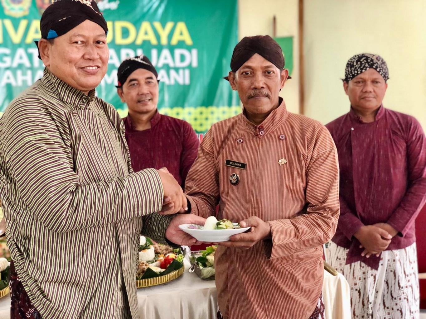 Pada kesempatan itu peserta disuguhi menu makanan tumpeng khas Yogyakarta yang dibagikan kepada semua peserta yang sebelumnya telah diberikan doa bersama yang dipimpin oleh simbah K.H.Jalal Asnawi, sesepuh dan ulama Kalurahan Srimartani. Sedangkan Lurah Srimartani, H.Mulyana berbagi nasi tumpeng dengan Panewu Piyungan dan para tokoh yang hadir di panggung bersama dengan masyarakat sebagai wujud dekatnya pemerintah dengan rakyatnya.